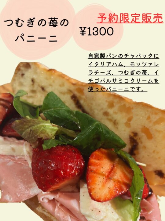 (例)つむぎのDMにて、いちご大福、珈琲セット、パニーニの予約が可🙆♀️